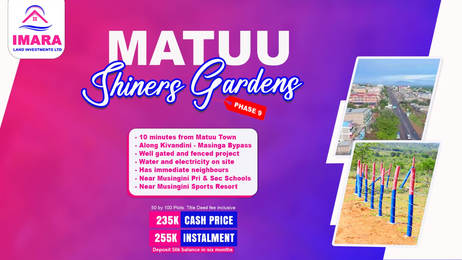 Welcome to Shiners Gardens Matuu, a remarkable investment opportunity in the rapidly growing town of Matuu in Machakos County